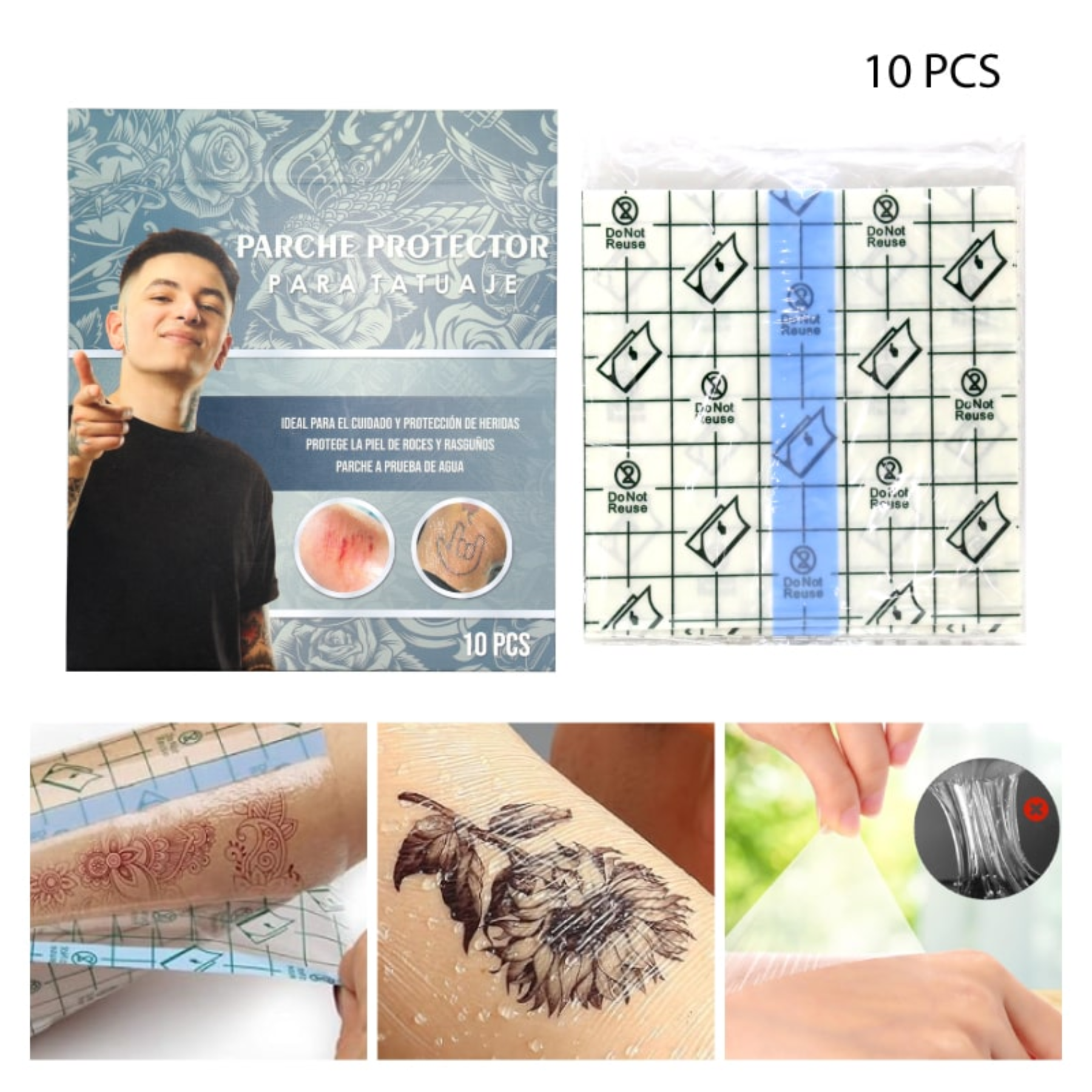 PARCHE PROTECTOR PARA TATUAJES Y CICATRIZACIÓN – 10 PCS